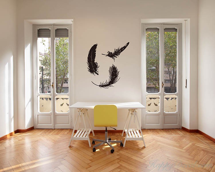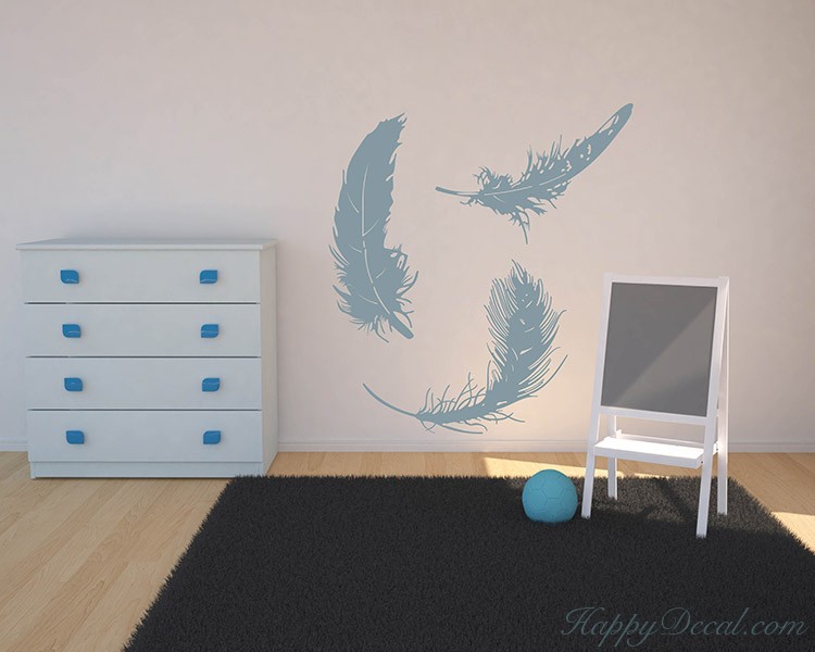 This wall decal is about a set of 3 feathers. It belongs to the modern wall decal.