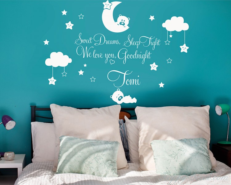This wall sticker set with different elements that you can arrange on your wall in any way you want. A cute bear sleeping on a cloud, Perfect for a nursery, kids room and Babies room.