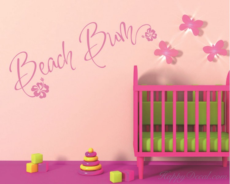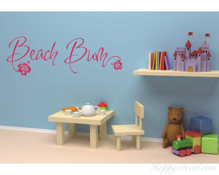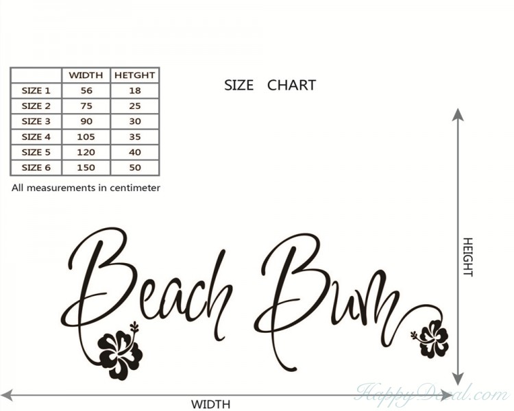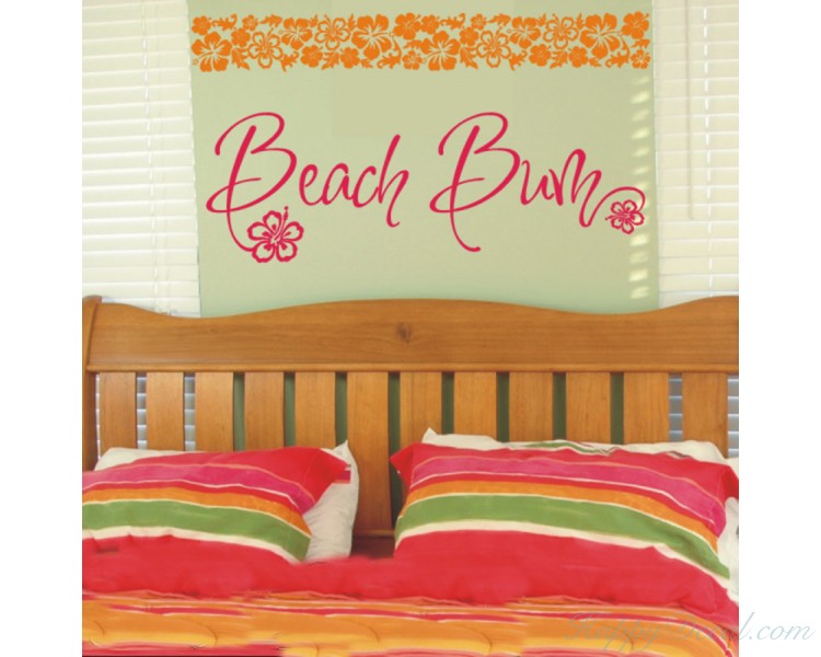 This wall decal is a kind of quote wall decal with the saying:"beach bum".You may have such a quote decal in your bedroom, nursery room as well as in the bathroom.Quotes wall decals are increasingly becoming more and more popular in the wall decoration.Brighten your walls and add flair to your room is just as easy.