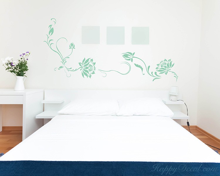 Beautiful Lotus Floral Vines Modern Wall Art Vinyl Decal