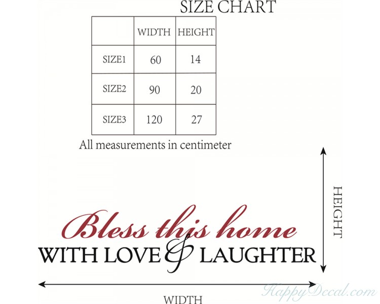 This wall decal is a kind of family quote wall decal with the saying:"Bless our home, and a..