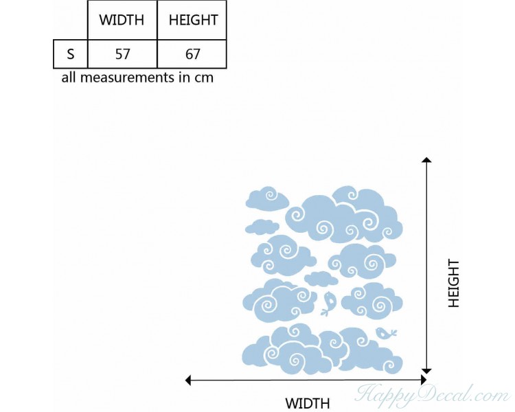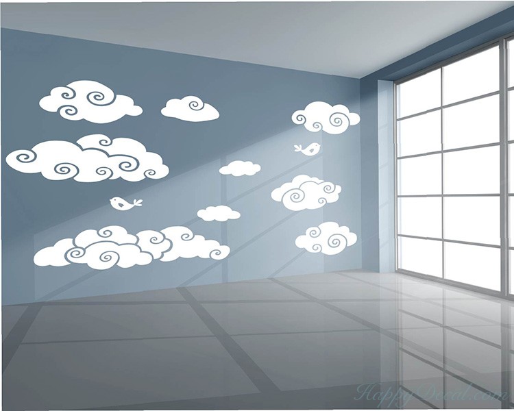 This wall decal is a kind of nursery decal which is in lovely cartoon style. It is some lovely clouds and birds.