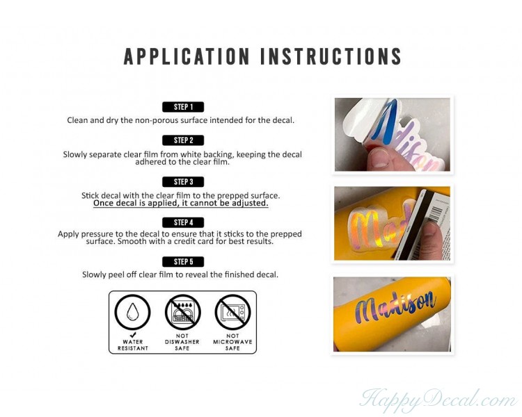These decals can be used on tumblers, water bottles and most smooth hard surface..