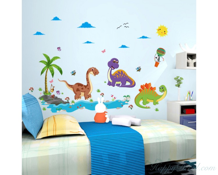 Various Cute Dinosaur Playing in the Jungle Wall Stickers