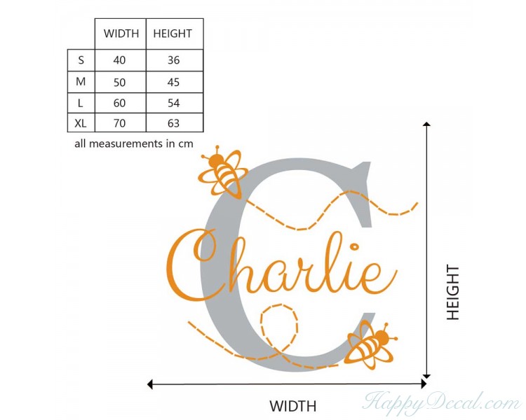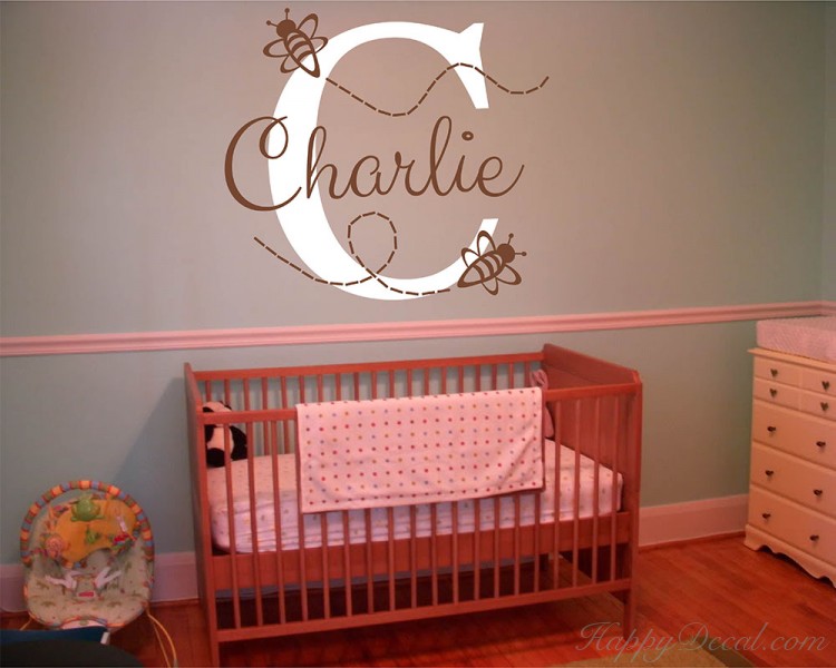 Bumble bee stickers, Personalized name wall decals, Kids bedroom decor, Custom name decals, Monogram wall decals, Nursery wall decal.
