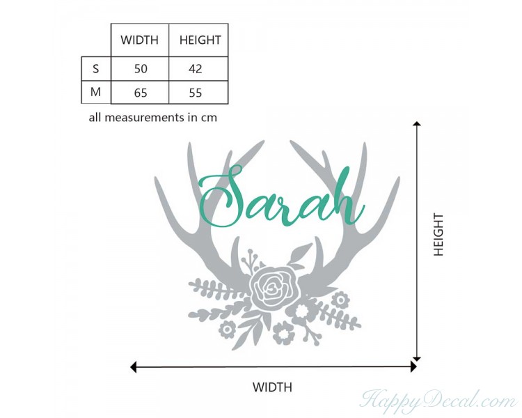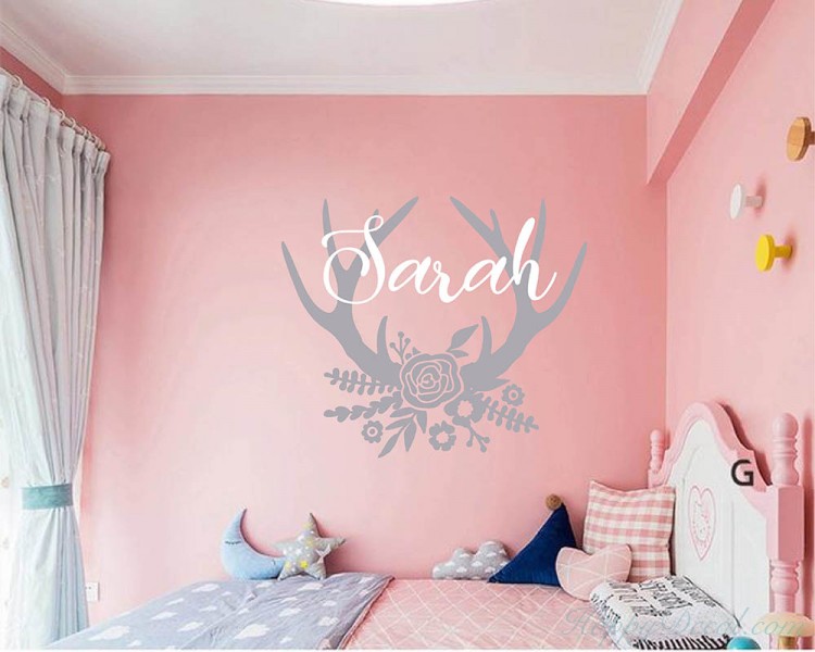 This gorgeous decal with flowers, antlers and personalized name would be the perfect finishing touch in any nursery or girls bedroom!