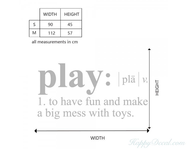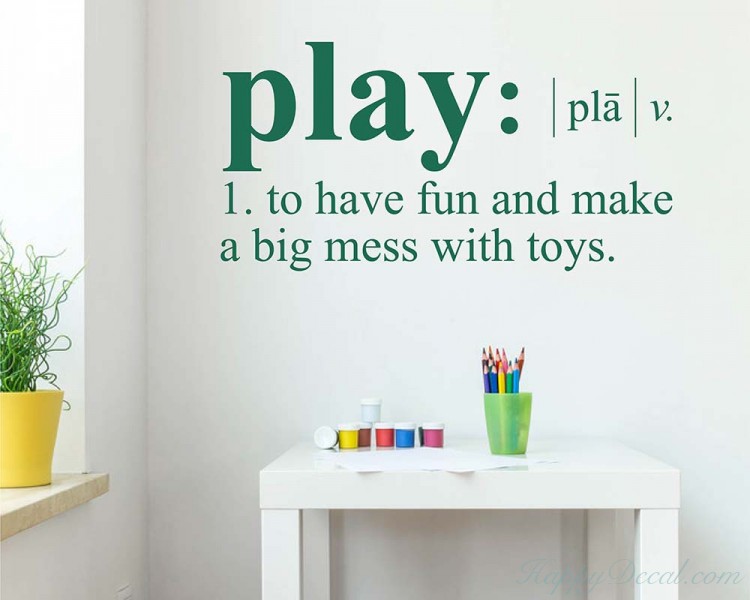Play- to have fun and make a big mess with toys. Dictionary definition Decal for playroom.