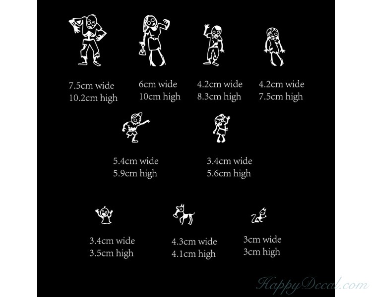 Decals are approx. 4"-1.5" dependent on the "family member".