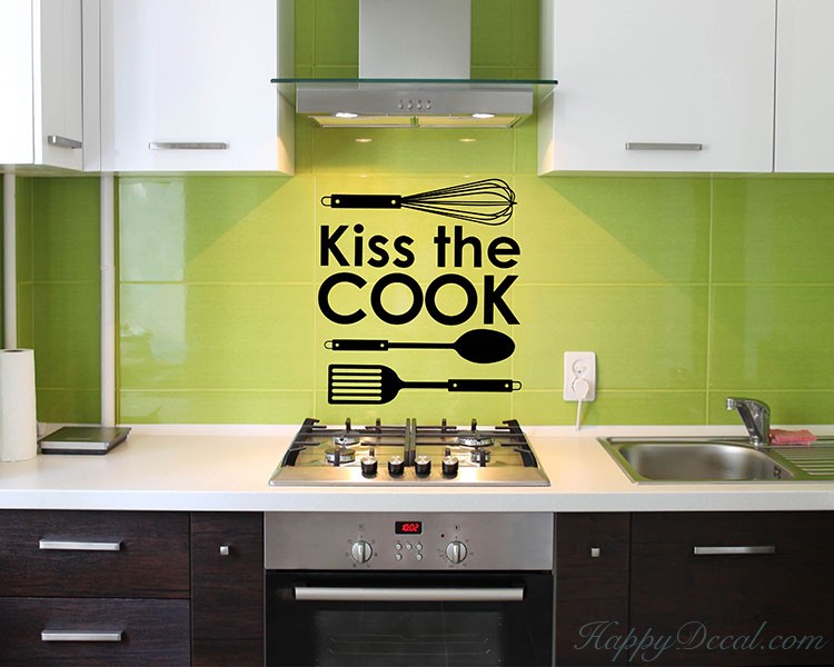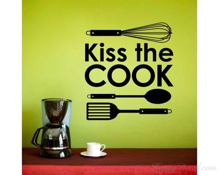 This wall decal is a kitchen quote wall decal with some cooking stuff.