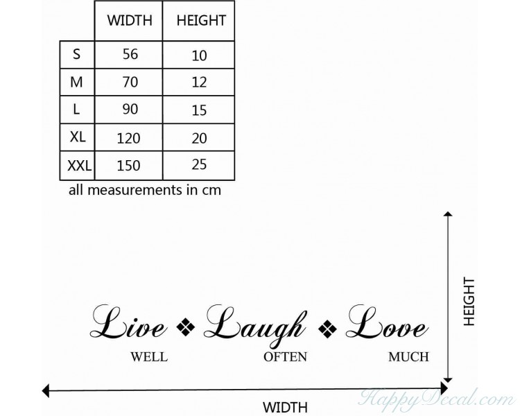 This wall decal is a kind of quote wall decal with the saying:"Live, laugh, love."&nbs..