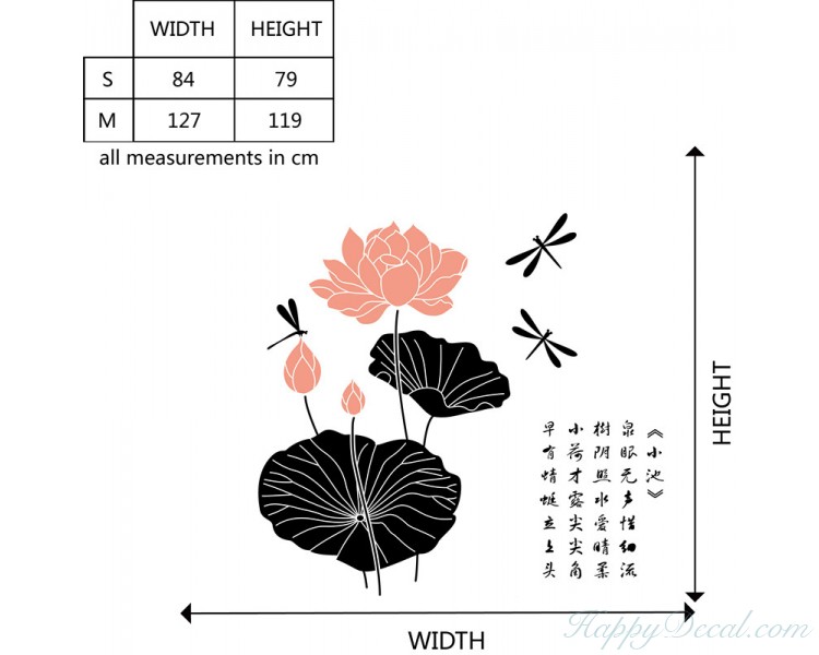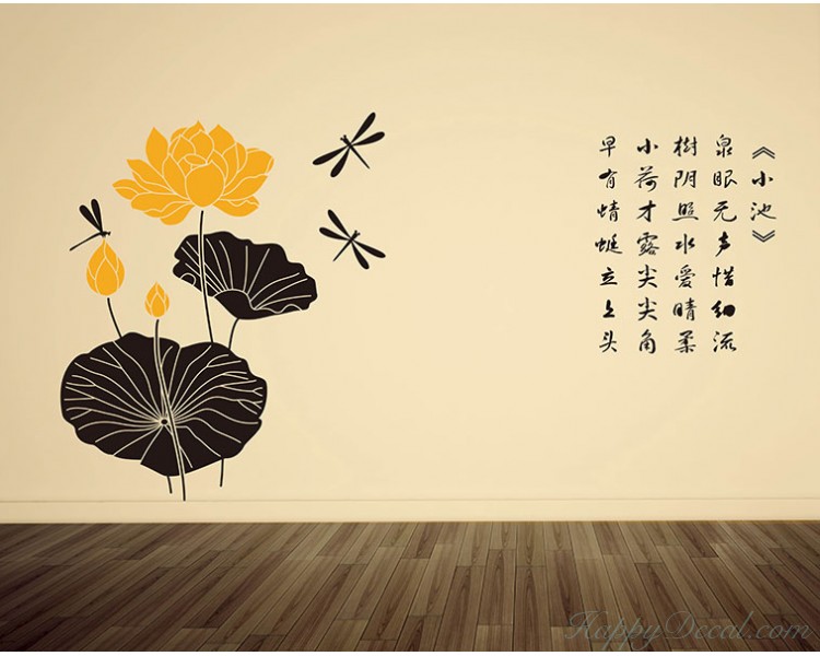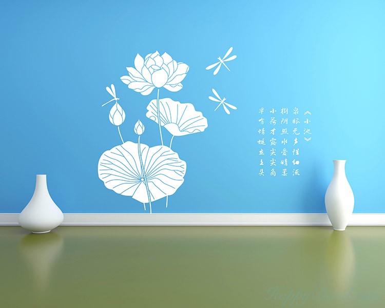 This wall decal is about the beautiful lotus, and beside the lotus there is a Chinese poem.