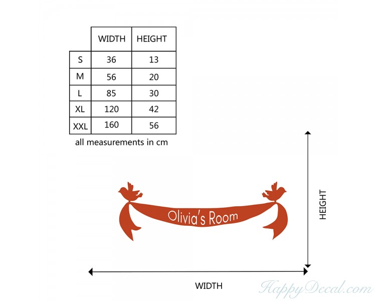 This wall decal is a customized name on the ribbon with 2 birds.