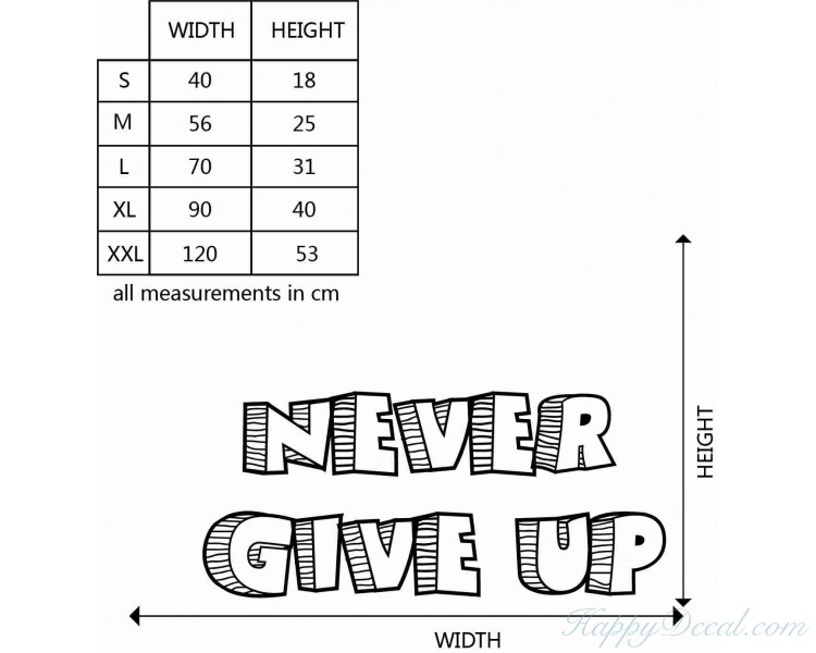"Never give up." You may have such a quote decal in your living room, bedroom, nursery room as well as in the office.