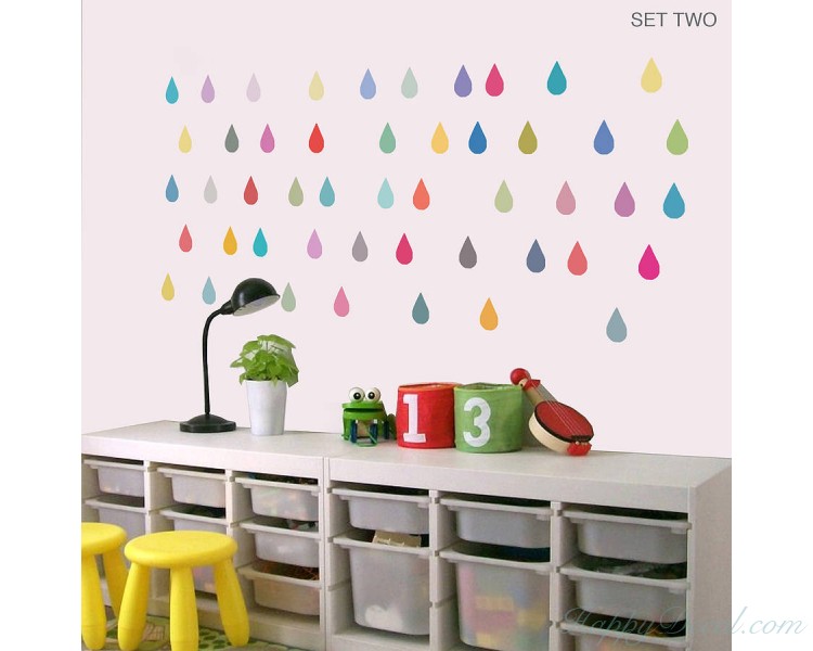 Add some excitement and fun to your room with these fabulously colourful raindrops which work particularly well in children's rooms and playrooms.Our raindrop stickers aren't just for your walls, they also look great on ceilings, furniture, mirrors and doors.