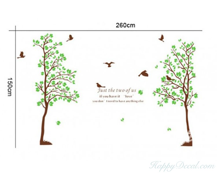 2 Trees with Green Leaves Wall Decal Vinyl Tree Art Stickers