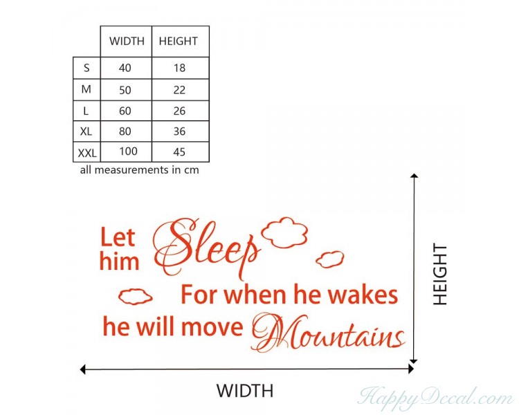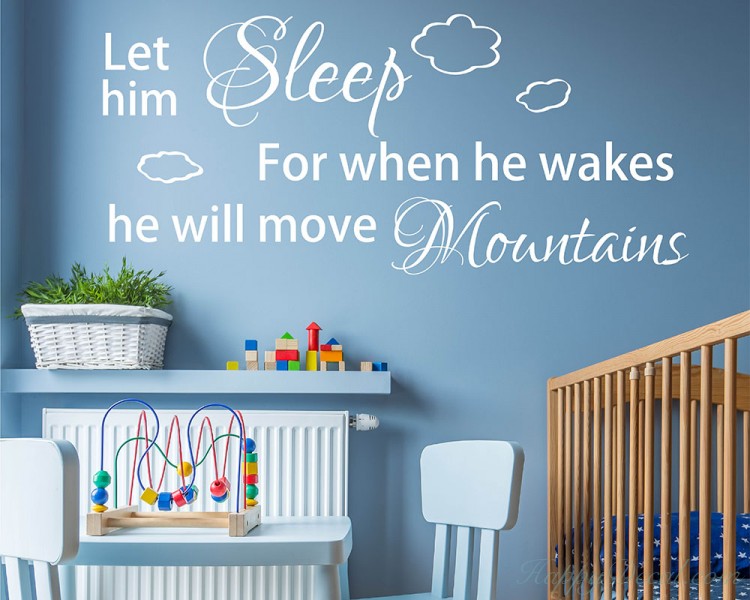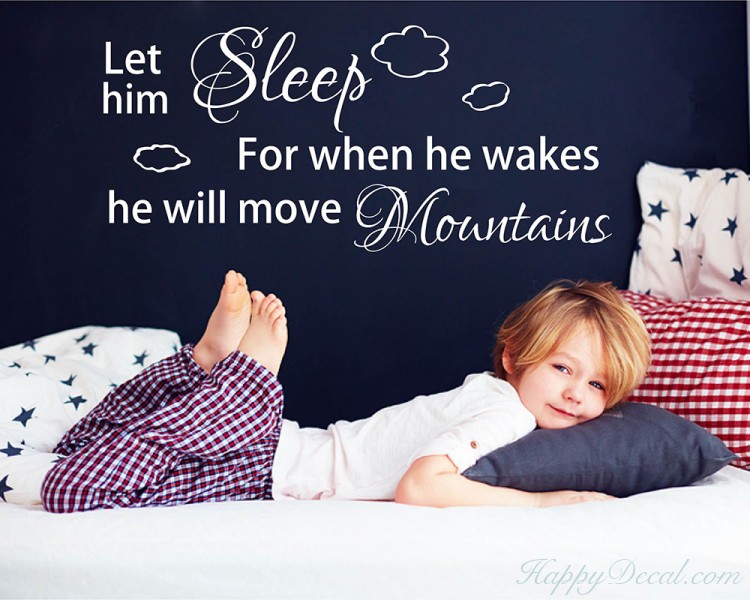 Let him sleep for when he wakes he will move mountains wall decal, move mountains, nursery wall art. A perfect gift for a baby shower, new arrival, or to decorate a room for your own little one!