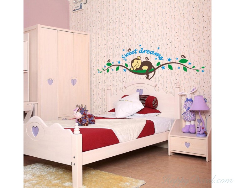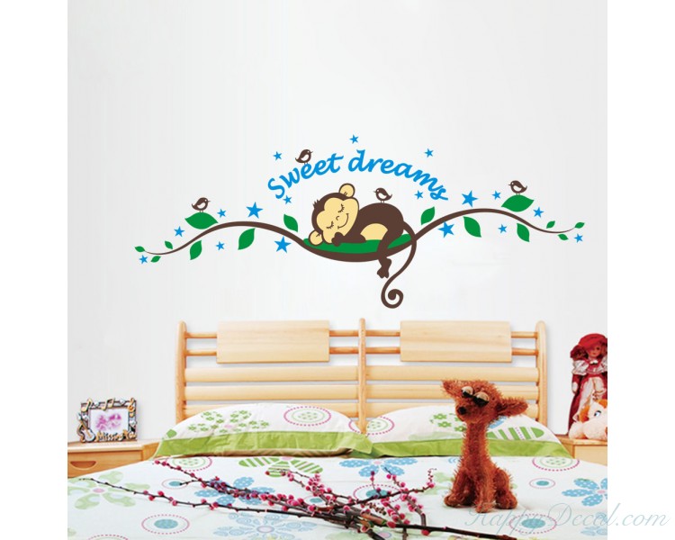 -53% Sweet Dreams Wall Stickers Monkey Sleeping on the Branch Wall Decals Monkey Wall Art Cute Lovely Home Decors For Children
