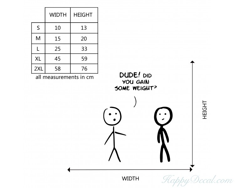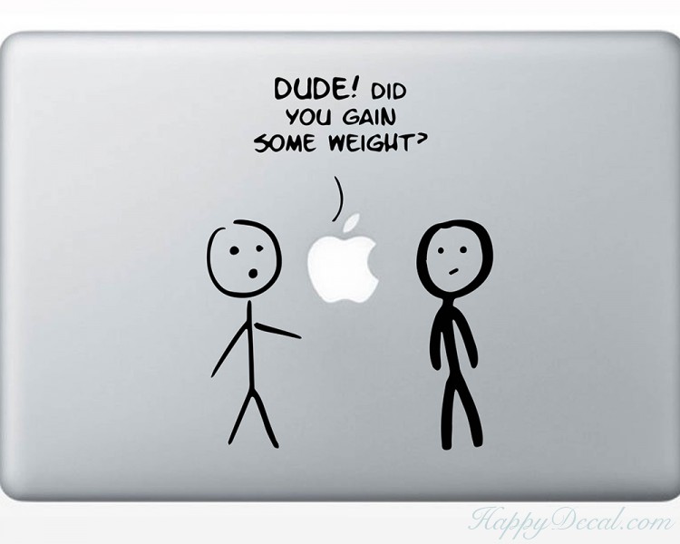 This wall decal is about 2 cute figures with the say: Dude! Did you gain some weight?