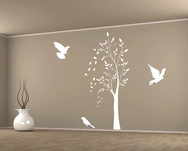 This wall decal is about a tree with some birds flying around. You may paste this decal in your living room as well as you bedroom.