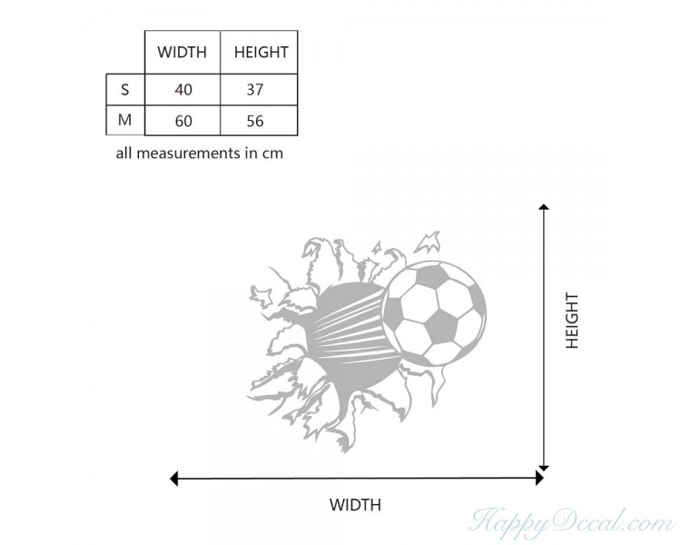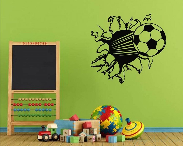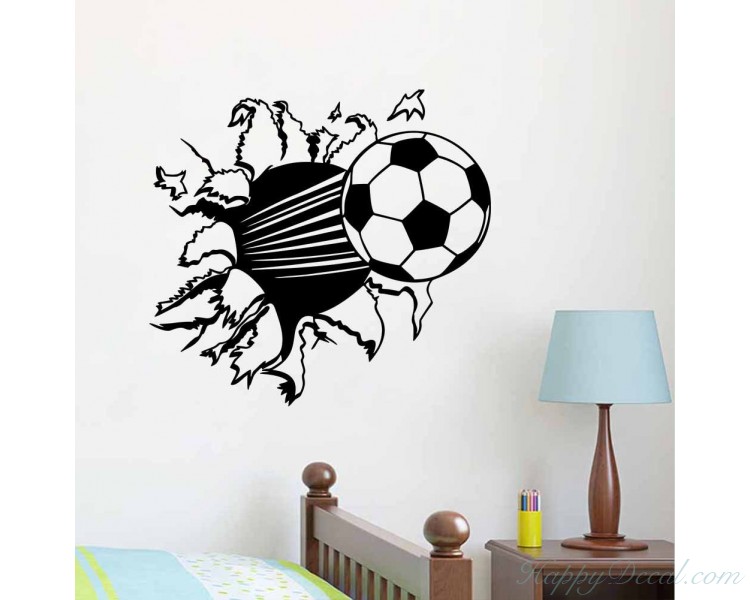 Bring fun to your home. This Soccer Ball Hit Break Through Wall decal would be perfect in your kids room.