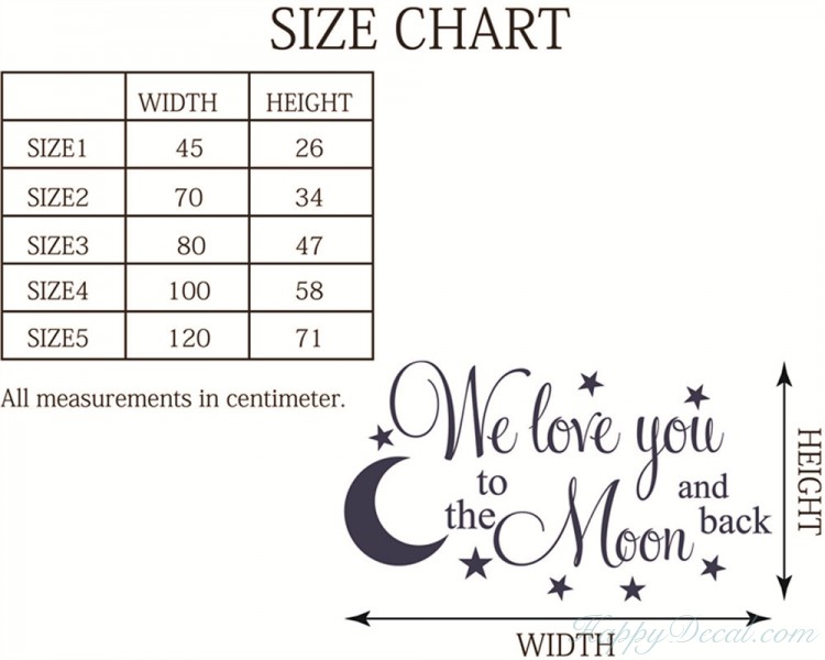 This lovely design is ideal for a little boy or girl's bedroom.. featuring the quote 'We love you to the moon and back.