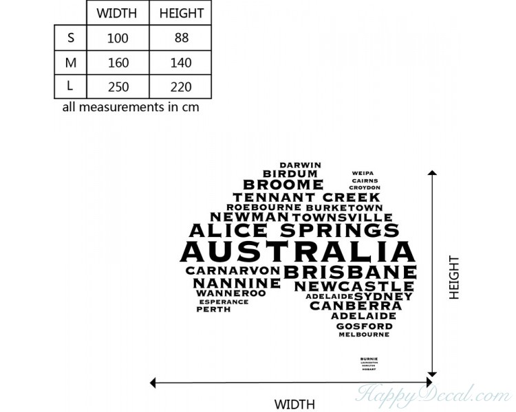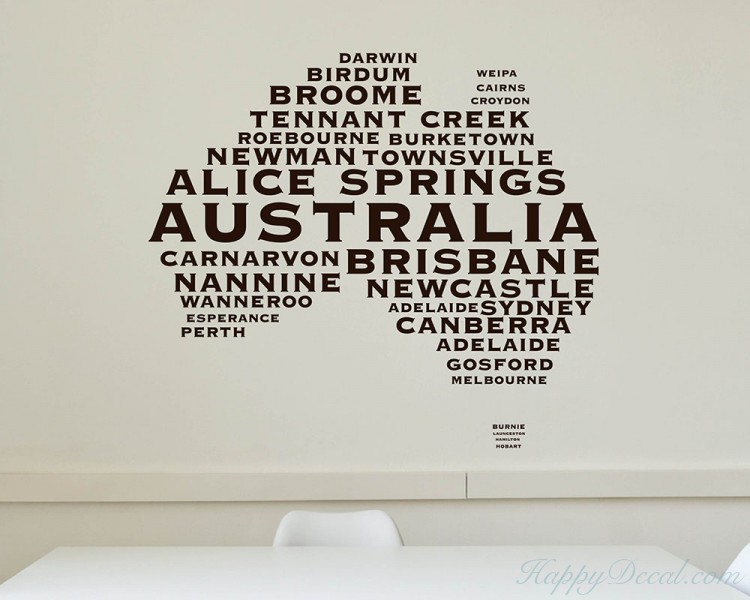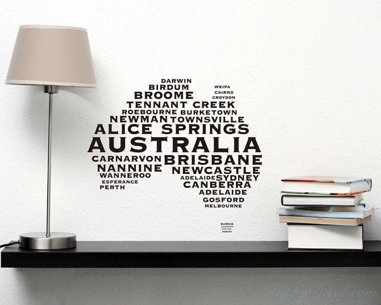 This wall decal is about the map of Australia, and every part of the map is shown in the form of city names.